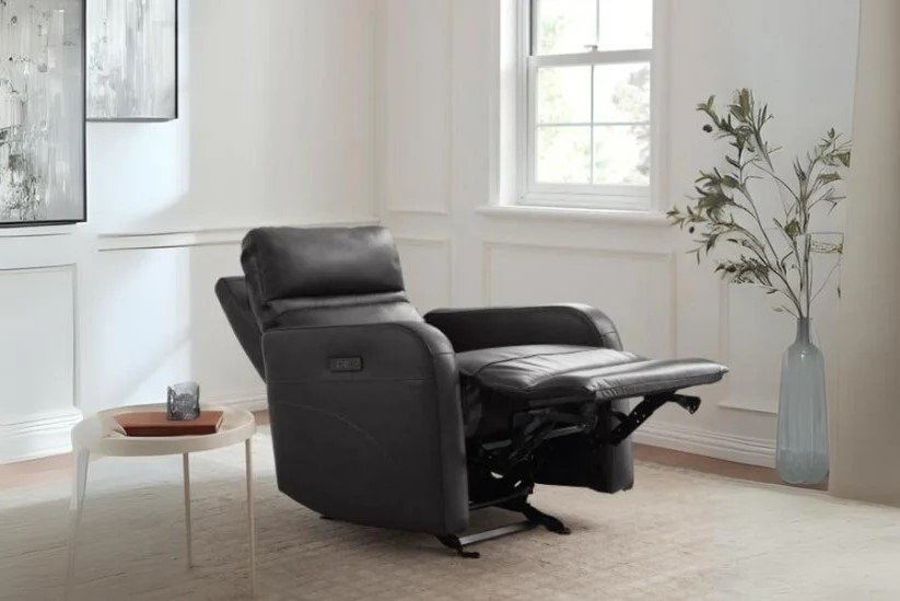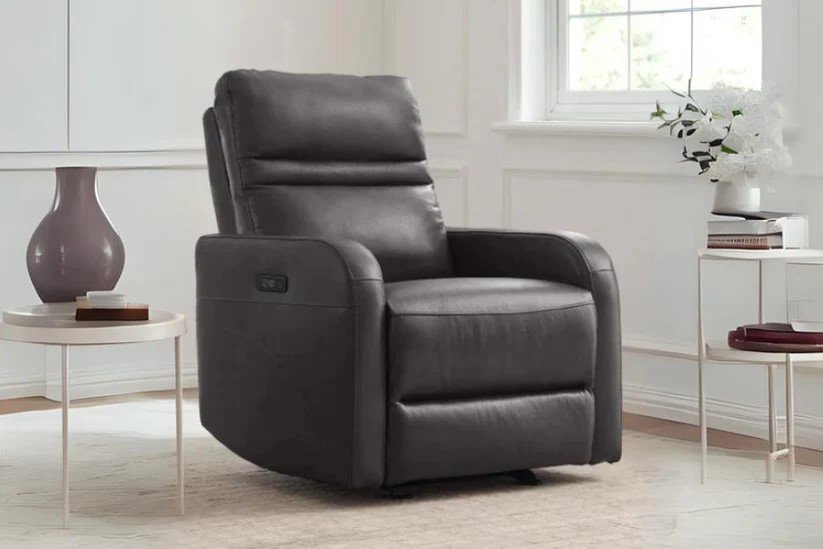 The GilmanCreek Aldryn Leather Power Glider Recliner offers elegant top-grain leather, smooth power headrest and footrest controls, and built-in charging ports — bringing comfort, style, and smart convenience together