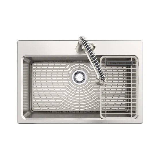 The Pro-Function Dual-Mount Sink combines durable stainless steel, a versatile grated rack, and a two-function faucet with powerful Sweep spray — delivering efficiency, style, and convenience for every task.