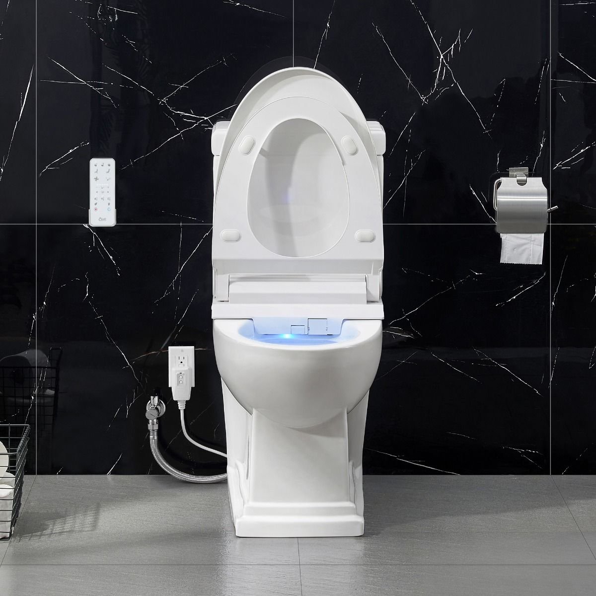 Streamlined elegance and futuristic comforts meet in the Nova elongated bidet smart toilet by OVE Decors. With its fully customizable water temperature, pressure and bidet wash settings easily accessible by an intuitive remote control, pampering air drying and deodorizing, and self-cleaning functions before and after every use, the Nova will transform your bathroom into a modern oasis. A heated antimicrobial seat that noiselessly opens and closes when it senses your presence plus a soothing night light and powerful 1.27 gallon single auto flush completes the hands-free experience. All in a compact white design with concealed trapway for a sleek and seamless contemporary look.