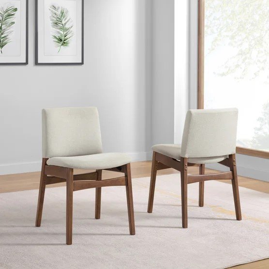 Transform your dining space with the Pike & Main Stella 5-Piece Dining Set, where mid-century modern design meets everyday functionality. This set features a sleek dining table with a rich walnut top, beautifully complementing the natural wood grain. Paired with four matching dining chairs, each crafted from durable rubberwood with upholstered seats and backrests. The curved upholstered seat cushion and backrest provide exceptional comfort, while the protective floor glides keep your floors looking pristine.
