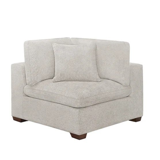 This corner chair unit features reversible plush cushions and sturdy tapered wood legs — designed for style, stability, and easy configuration to expand your living space in comfort and elegance