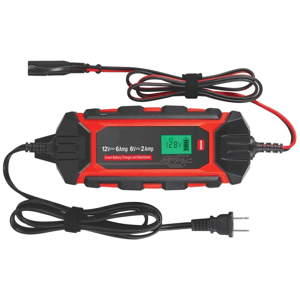 The UltraPro Elite Smart Battery Charger and Maintainer charges your battery and automatically switches to maintenance mode when fully charged. This charger comes with overcharge protection, short-circuit protection, overload protection and reverse polarity protection. It works with most automotive and marine batteries, plus it comes with an IP65 rating which protects against liquid and dust